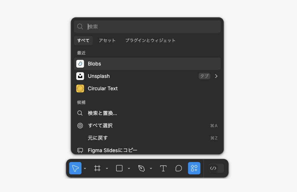 プラグインやアセットを呼び出す時にとても便利です。プラグイン名がわかっているときは、このショートカットでプラグイン名を数文字打ち込むと、すぐに呼び出すことができるようになります。